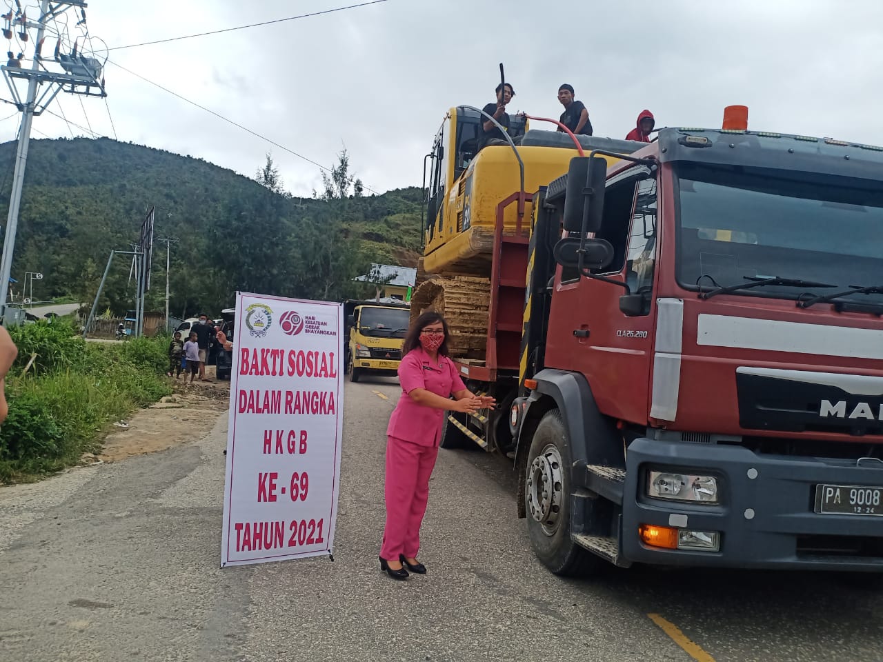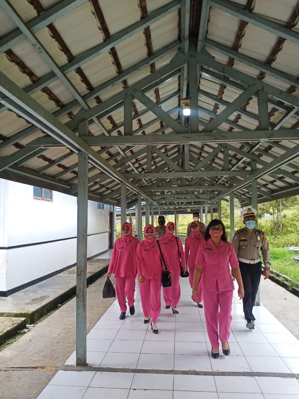 SuaraMabes, Paniai – Ketua Bhayangkari Cabang Paniai Ny. Riris Marpaung Bersama pengurus bhayangkari cabang paniai, yang didampingi oleh Kabag Ops Polres Paniai AKP Mika Rumbrapuk dan Kasat Lantas Polres Paniai IPTU Hafirudin, S. H laksanakan giat bhakti sosial kepada para pasien Covid-19 dalam rangka HKGB Ke – 69 Tahun 2021 di Paniai. Yang dilaksanakan di depan ruangan Covid-19 RSUD Kab. Paniai. Kamis (16/09/2021) Pukul 11.30 Wit.