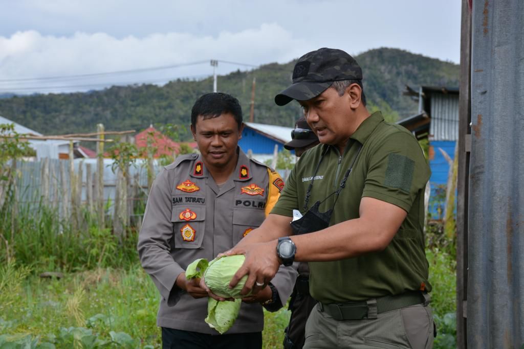 MediaSuaraMabes, Jayapura – Wakaops 1 Kombes Pol Bambang Widjanarko Baiin, S.I.K, M.Si bersama Binmas Noken Polri yang didampingi Kasatgas Preventif Kombes Pol Joni Afrizal Syarifuddin, S.I.K, S.H, M.H dan Kasatgas Siber Bambang Widyatmoko, S.H, M.M lakukan panen pada kebun sayur milik ibu Y. Iyowau melalui program Kasuari yang bertempat di Kampung Tokapo Distrik Kamuu Kab. Dogiyai, Sabtu (10/9).