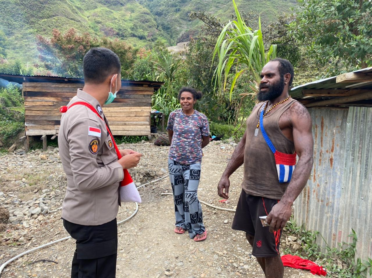 Iptu Alaudin Patawari dalam kesempatannya menyampaikan pada hari ini kami melakukan kegiatan program Koteka (Komunikasi Tokoh Elit Kamtibmas) dengan mengunjungi Kepala Kampung Pilia Kambio Telenggen dan keluarga di Kampung Wuyuneri Distrik Mulia Kabupaten Puncak Jaya.