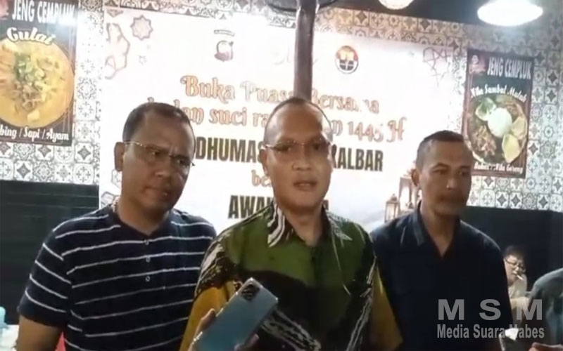 Kabid Humas Polda Kalbar Kombes Pol Raden Petit Wijaya, S.IK.,M.M., didampingi oleh Kasubbid Penmas AKBP Prinanto membuka langsung acara silaturahmi yang dirangkai dengan acara buka bersama dengan Awak Media tersebut.