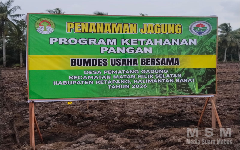 MediaSuaraMabes, Ketapang – Badan usaha milik desa ( BUMDes) menggelar kegiatan penanaman jagung bersama masyarakat sebagai upaya meningkatkan ketahanan pangan sekaligus mendukung perekonomian desa. Kegiatan tersebut dilaksanakan di lahan pertanian desa pada hari sabtu, (7/3/2026), dengan melibatkan pengurus BUMDes, Kepala Desa, BPD, Kapolsek, Bhabinkabtibmas, Perangkat Desa, Kadus, RT, serta warga setempat.
