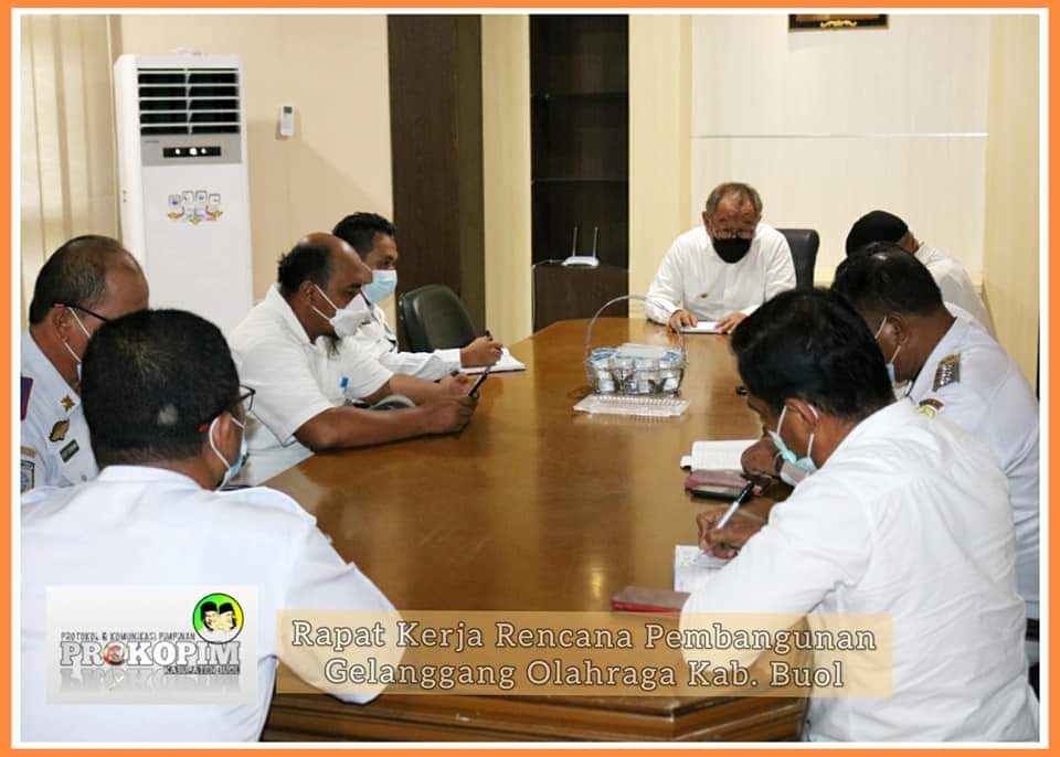 MediaSuaraMabes, Buol – Bupati Buol dr. H. Amirudin Rauf sp.Og, M.Si memimpin langsung rapat terkait membahas langkah-langkah tekhnis proyeksi pembangunan gelanggan olahraga. Bertempat di ruang kerja Bupati Buol, Rabu, 09 Maret 2022, Pukul 14.00 Wita. Turut hadir Wakil Bupati Buol sekaligus Ketua KONI Kab. Buol, Kadis PU, Disperkim, Dishub, Camat Biau, DLH, dan Bagian Perencanaan Ruang, dan Bagian Aset.
