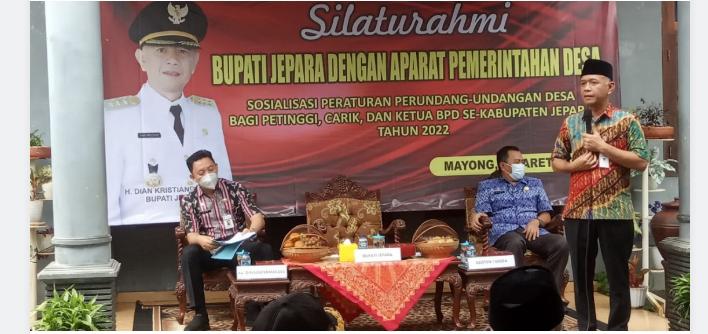 MediaSuaraMabes, Jepara – Setelah melakukan kunjungan dari kecamatan Batealit Bupati Jepara Dian kristiandi beserta rombongan melanjutkan perjalanan ke kecamatan Mayong, dan tepatnya menuju Desa Bungu. Dalam RoadShow ke Desa tersebut untuk mensosialisasikan perundang undangan desa. Hadir dalam acara ini seluruh jajaran Forkopimcam, para petinggi dan Carik beserta BPD sekabupaten Jepara. Dan diadakan di Desa Bungu, Selasa (01/03/2022).