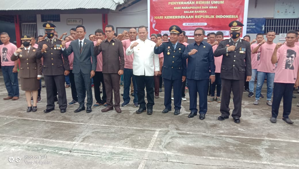 MediaSuaraMabes, Talaud – Bupati kab Talaud Dr dr Elly Engelbert Lasut ME,Hadir sebagai Pembina Upacara. Kepala Lapas {kalapas} kelas III Lirung bpk Djitro Tindi S.IP melaporkan yang di bacakan Staf lapas bahwa napi yang telah mendapatkan Remisi dari Kementerian Hukum dan Ham tindak Pidana non PP No 28 tahun 2006 dan Non PP No 99 tahun 2012, sebanyak 41 orang,