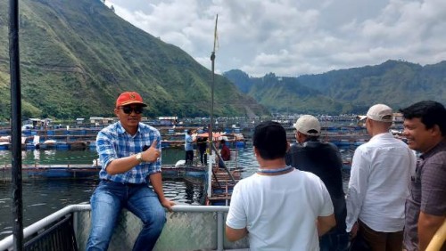Selanjutnya Bupati Parosil serta rombongan pun kembali melanjutkan peninjauan ke sentra budidaya ikan Keramba Jaring Apung (KJA) yang dikelola masyarakat di wilayah Danau Toba.