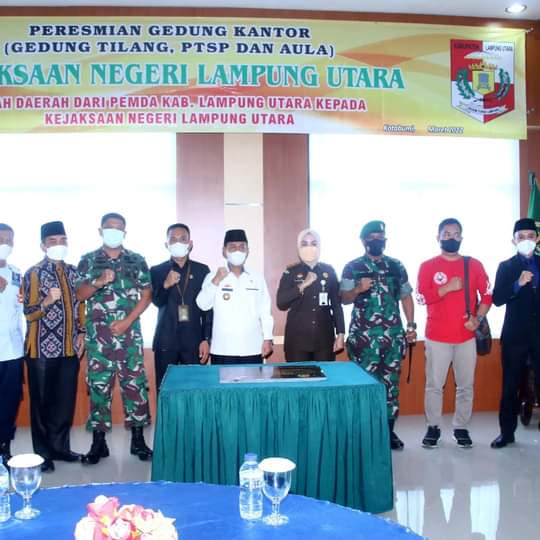MediaSuara Mabes, Kotabumi – Bupati Lampung Utara H. Budi Utomo, S.E., M.M., meresmikan Gedung Tilang, Pelayanan Terpadu Satu Pintu (PTSP) dan Aula Kejaksaan Negeri Lampung Utara, Rabu (02/03/2022). Gedung tersebut merupakan hibah daerah dari Pemerintah Kabupaten Lampung Utara. “Semoga dengan diresmikannya beberapa gedung baru ini dapat menambah motivasi dan semangat jajaran Kejaksaan Negeri Lampung Utara mendedikasikan diri untuk memberikan pelayanan terbaik bagi masyarakat Lampung Utara,” kata Bupati saat memberikan sambutan.