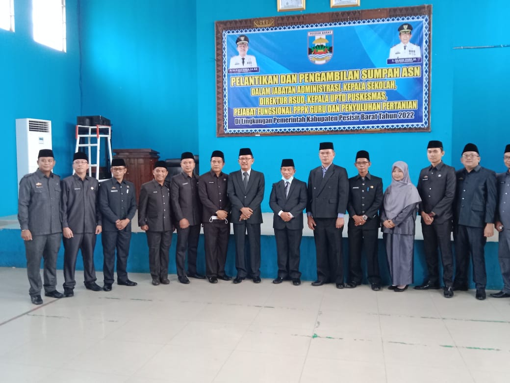 MediaSuaraMabes, Pesisir Barat – Bupati Pesisir Barat DR, Drs, Agus Istiqlal SH,MH, Melantik dan pengambilan sumpah Jabatan Administrasi Kepala Sekolah, di Rektur RSUD, Kepala UPTD Puskesmas, Pejabat Pungsional PPPK Guru dan Penyuluhan Pertanian Di Lingkungan Pemerintah Kabupaten Pesisir Barat acara berlangsung di Gedung Serba Guna Selalaw. Jumat (29/07/2022).