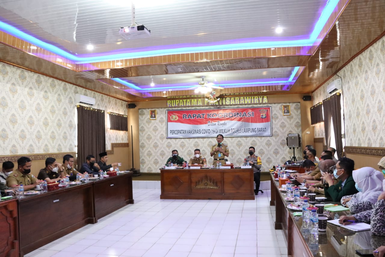 Kapolres Lampung Barat AKBP Hadi Saeful Rahman, S.IK membuka secara langsung rapat koordinasi percepatan vaksinasi covid-19 di Kabupaten Lampung Barat dan Pesisir Barat.