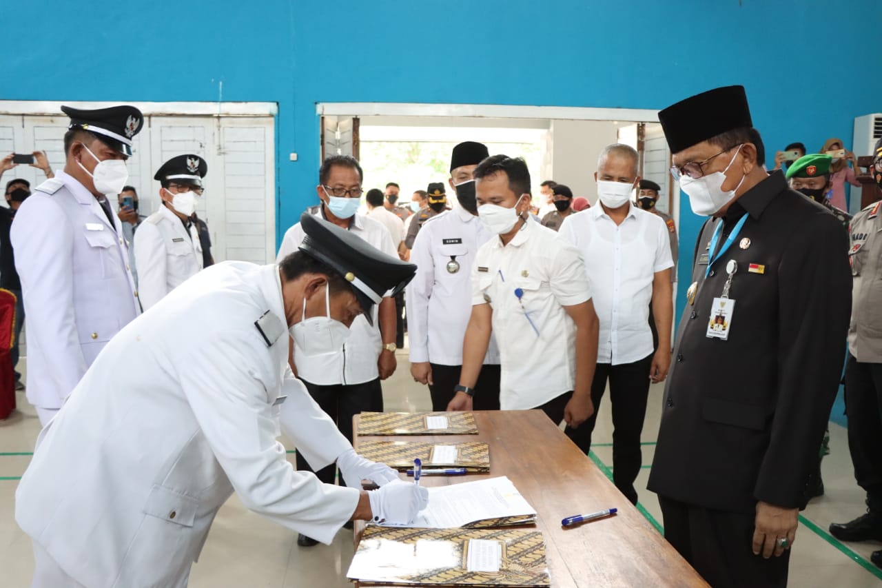 MediaSuaraMabes, Pesisir Barat – Bupati Pesisir Barat DR.Drs Agus Istiqlal, SH.,MH. Melantik 5 Peratin Terpilih Hasil Pemilihan Peratin (Pilperatin) Serentak Tahun 2021. Bertempat di GSG Labuhan Jukung, Kecamatan Pesisir Tengah, Rabu (22/09/2021).