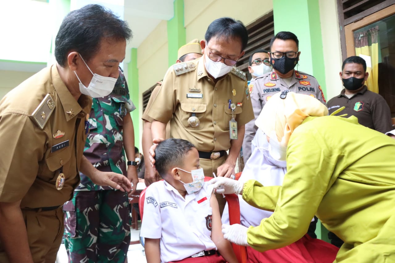Pelaksanaan vaksinasi terhadap anak usia 6- 11 tahun menjadi prioritas daerah untuk mendukung proses pembelajaran tatap muka, yang pelaksanaannya serentak di seluruh kecamatan di kabupaten pesisir barat. jenis vaksin yang digunakan adalah sinovac. perlu kerja keras kita bersama untuk mensukseskan program ini terutama mengedukasi dan melakukan pendekatan k