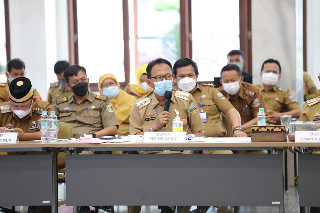 MediaSuaraMabes, Bandar Lampung – Bupati Pesisir Barat DR Drs. Agus Istiqlal, SH., MH Menghadiri Rapat Penanganan Covid-19 Omicron dan Pelaksanaan Program Kartu Petani Barjaya (KPB), bertempat di Mahan Agung Bandar Lampung Senin (14/02/2022).