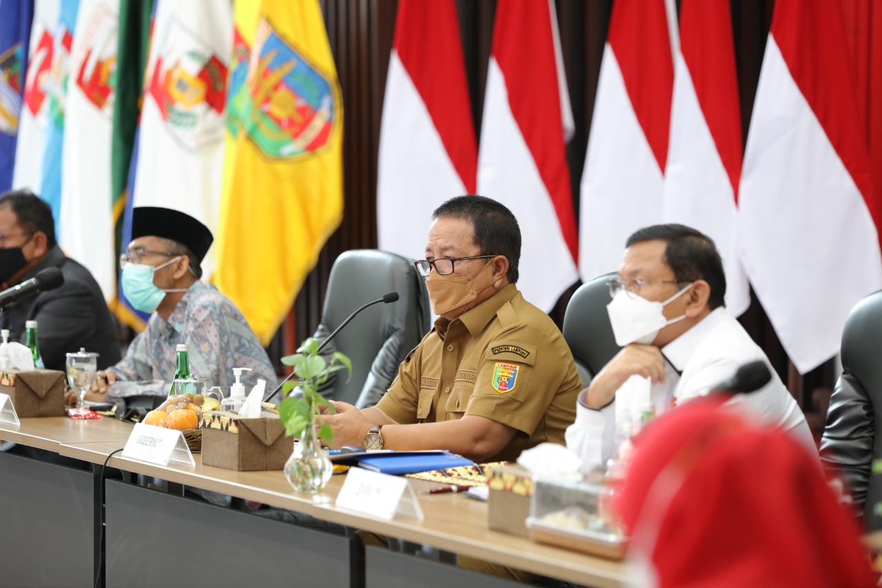Rapat juga dihadiri oleh Bupati/Walikota se-Provinsi Lampung dan diikuti oleh Forkopimda seluruh Kabupaten/Kota secara daring.