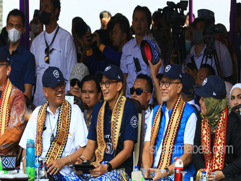 MediaSuaraMabes, Pesisir Selatan – Menteri Pariwisata dan Ekonomi Kreatif (Menparekraf) RI, Sandiaga Salahudin Uno menghadiri pembukaan kejuaraan World Surfing League (WSL) Krui Pro QS 5000 tahun 2022 di Pantai Tanjung Setia, Kecamatan Pesisir Selatan Kabupaten Pesisir Barat, Sabtu (11/06/2022).