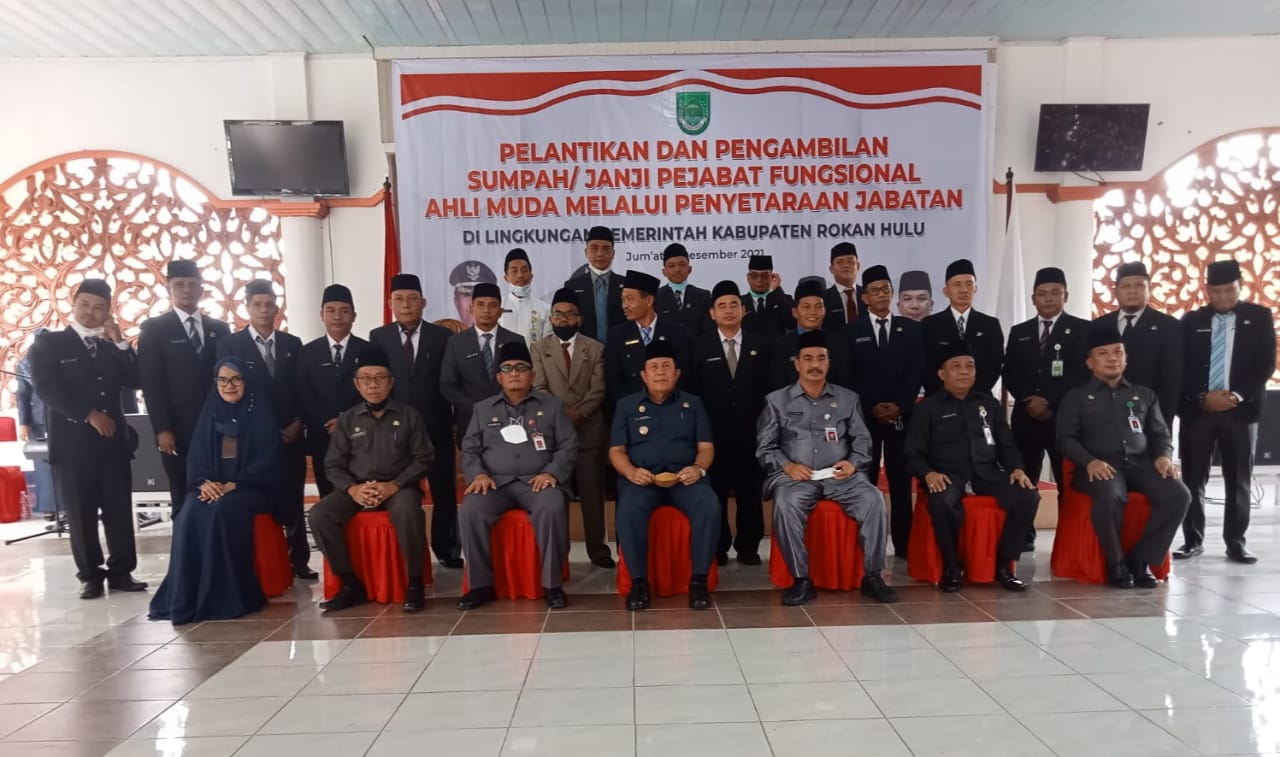 Pelantikan dan Pengambilan sumpah jabatan ini sesuai dengan Surat Keputusan (SK) Bupati Rohul Nomor : Kpts.820/BKPP-PA/881/2021 tentang Pemberhentian PNS dari Jabatan Struktural dan Pengangkatan PNS dalam jabatan fungsional ahli muda melalui penyetaraan.