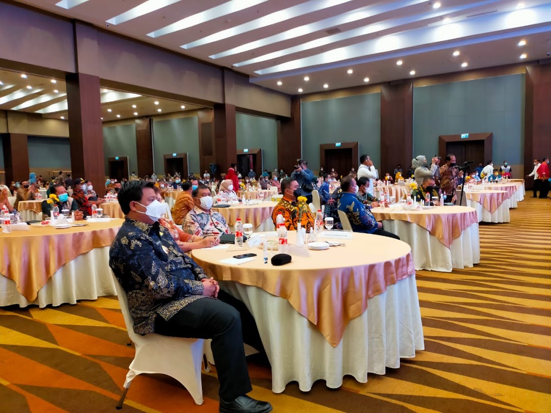 SuaraMabes, Samosir – Bupati Samosir Vandiko T. Gultom, didampingi Kepala Bappeda Samosir Rudi SM. Siahaan, mengikuti pelaksanaan Musrenbang perubahan Rencana Pembangunan Jangka Menengah Daerah (RPJMD) Provinsi Sumatera Utara (Sumut) 2019-2023, di Grand Ballroom Hotel Santika Diandra Medan, Kamis (03/06/2021).