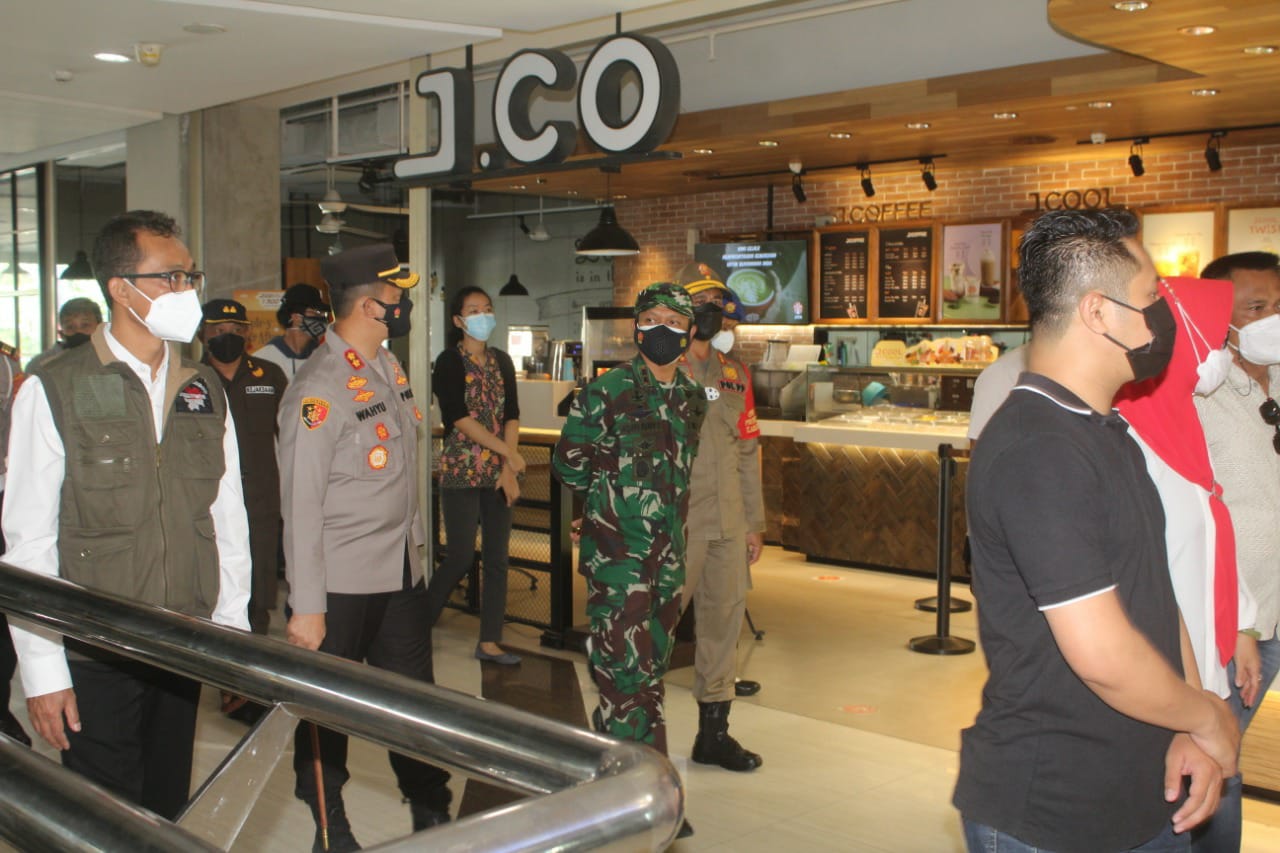 Suara Mabes, Sukoharjo  – Jajaran Forkompimda Sukoharja melakukan Inspeksi di sejumlah pusat Perbelanjaan/mall di The Park Mall Solo Baru dan Hartono Mall Solo Baru yang berlokasi di Jl. Ir. Soekarno Ds. Madegondo Kec. Grogol Kab. Sukoharjo, terkait operasional dan standar aturan penerapan Protokol kesehatan.