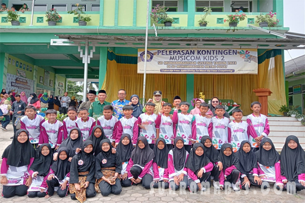 MediaSuaraMabes, Tanggamus – Hj Dewi Handajani SE Melepas KONTINGEN MUSICOM KIDS 2 SD Muhammadiyah Gisting Tahun 2023 Ke SD Muhammadiyan Metro Pusat Dengan Tema “Take Up Your Sportivity To Most Up Your Creativity.Jum’at (6/1/2023), Di SD Muhammadiyah Gisting Bawah.
