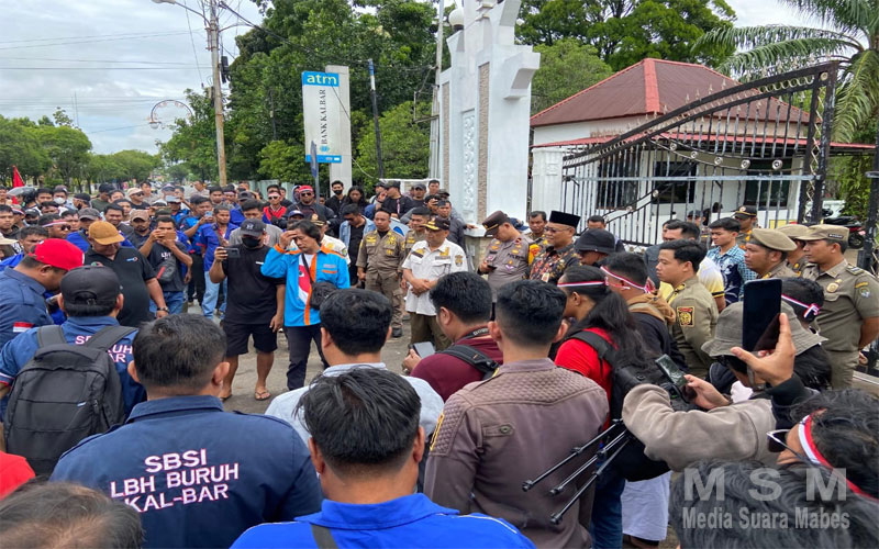 MediaSuaraMabes, Ketapang Kalbar – Polres Ketapang menurunkan 73 personel untuk mengawal kegiatan penyampaian aspirasi dari ratusan buruh pekerja yang tergabung didalam Aliansi Federasi Serikat Pekerja/Buruh Kabupaten Ketapang.