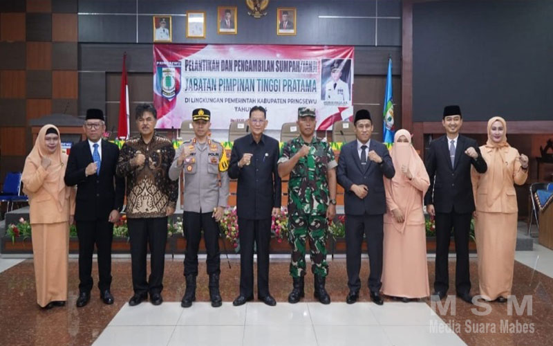 MediaSuaraMabes, Pringsewu – Pemerintah Kabupaten Pringsewu menggelar pelantikan dan Pengambilan Sumpah Jabatan Pimpinan Tinggi Pertama Kabupaten Pringsewu pada hari Jum’at, 2 Februari 2024, pukul 14.30 WIB. Acara ini berlangsung di Aula Kantor Bupati Pringsewu.