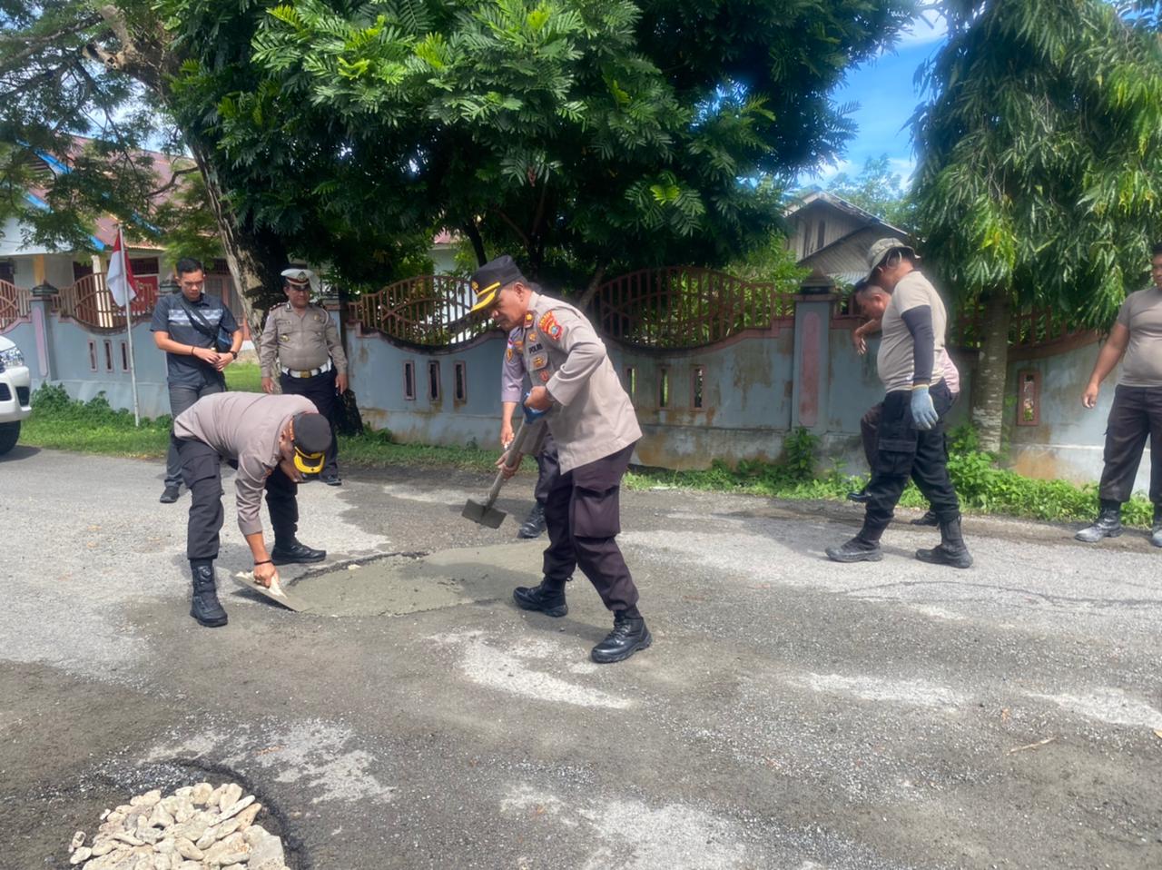 Cegah Kecelakaan Dijalan Raya Kapolres Pimpin Cor Penambalan Jalan Berlobang