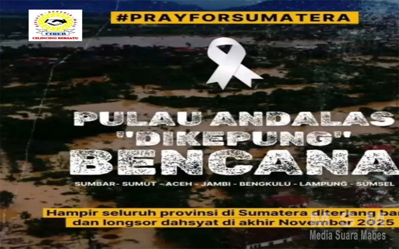 MediaSuaraMabes, Jakarta Utara — Cilincing Bersatu (CIBER) menyampaikan rasa prihatin yang mendalam serta belasungkawa atas tragedi banjir bandang yang melanda sejumlah daerah di Sumatra, terutama di Sibolga, Tapanuli Selatan, Aceh, dan Padang serta beberapa kota di Sumatera. Bencana yang terjadi baru-baru ini menimbulkan kerusakan besar, korban jiwa, serta menyisakan duka yang mendalam bagi masyarakat terdampak.