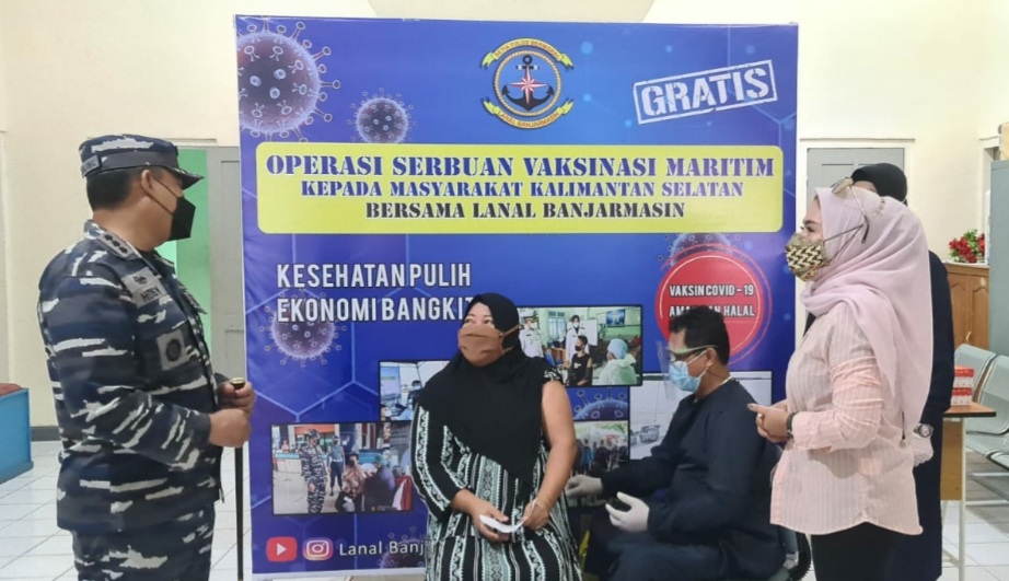 Dengan terapkan protokol kesehatan yang ketat, kali ini, Tim Vaksinator Lanal Banjarmasin kembali menyelenggarakan Operasi Serbuan Vaksinasi (Servak) Maritim tahap pertama dan ke-2 bertempat di Balai Pengobatan (BP) Lanal Banjarmasin terhadap masyarakat Kota Banjarmasin dan warga Pesisir serta para Pelajar dari Kec. Banjarmasin Selatan dengan jumlah peserta sebanyak 176 orang, berhasil divaksinasi semuanya dengan aman dan sehat dan Vaksin yang digunakan adalah Vaksin jenis Sinovac.