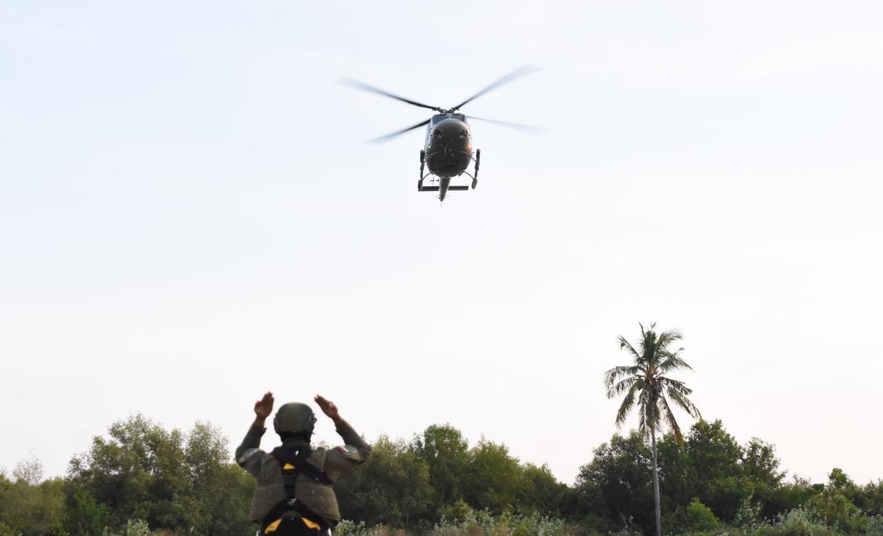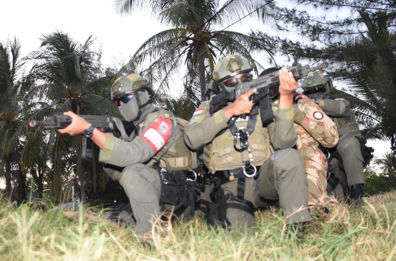 SuaraMabes, Situbondo – Dikeheningan malam tepat pada hari H jam J, dengan menggunakan 2 Pesawat Udara TNI AL jenis Casa tanpa diketahui musuh para pasukan khusus dari Prajurit Intai Amfibi (Taifib) Marinir dan Komando Pasukan Katak (Kopaska) TNI AL mulai melompat satu persatu dari ketinggian 6000 feet untuk melaksanakan terjun tempur dan Rubber Duck Operation (RDO) menuju titik coordinat Dropping Zone (DZ) di darat dan ditengah laut yang selanjutnya bermanuver dengan senyap menuju sasaran yang saat ini sudah dikuasai musuh.