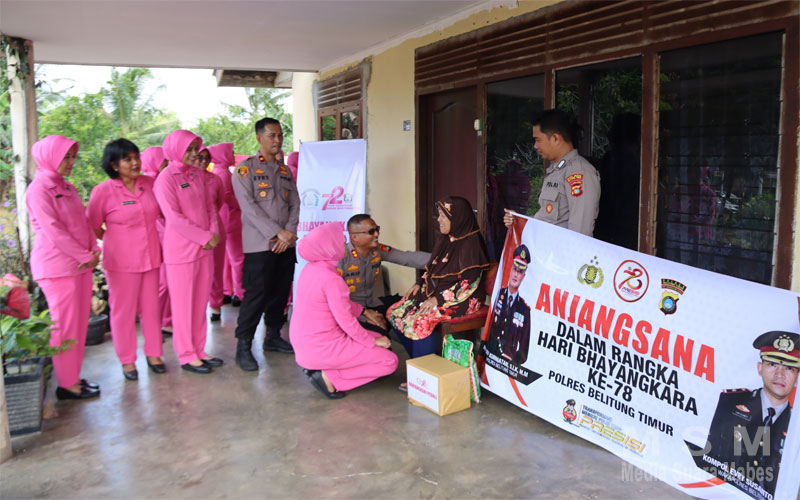 Kapolres Belitung Timur AKBP Arif Kurniatan, S.I.K., M.M., kepada Awak media mengatakan “pada hari ini kami mengadakan kegiatan Anjangsana ke Purnawirawan Polri dan Warakawuri yaitu kegiatan pemberian bantuan sosial berupa paket sembako dalam rangka memperingati HUT Bhayangkara ke-78 tahun 2024.