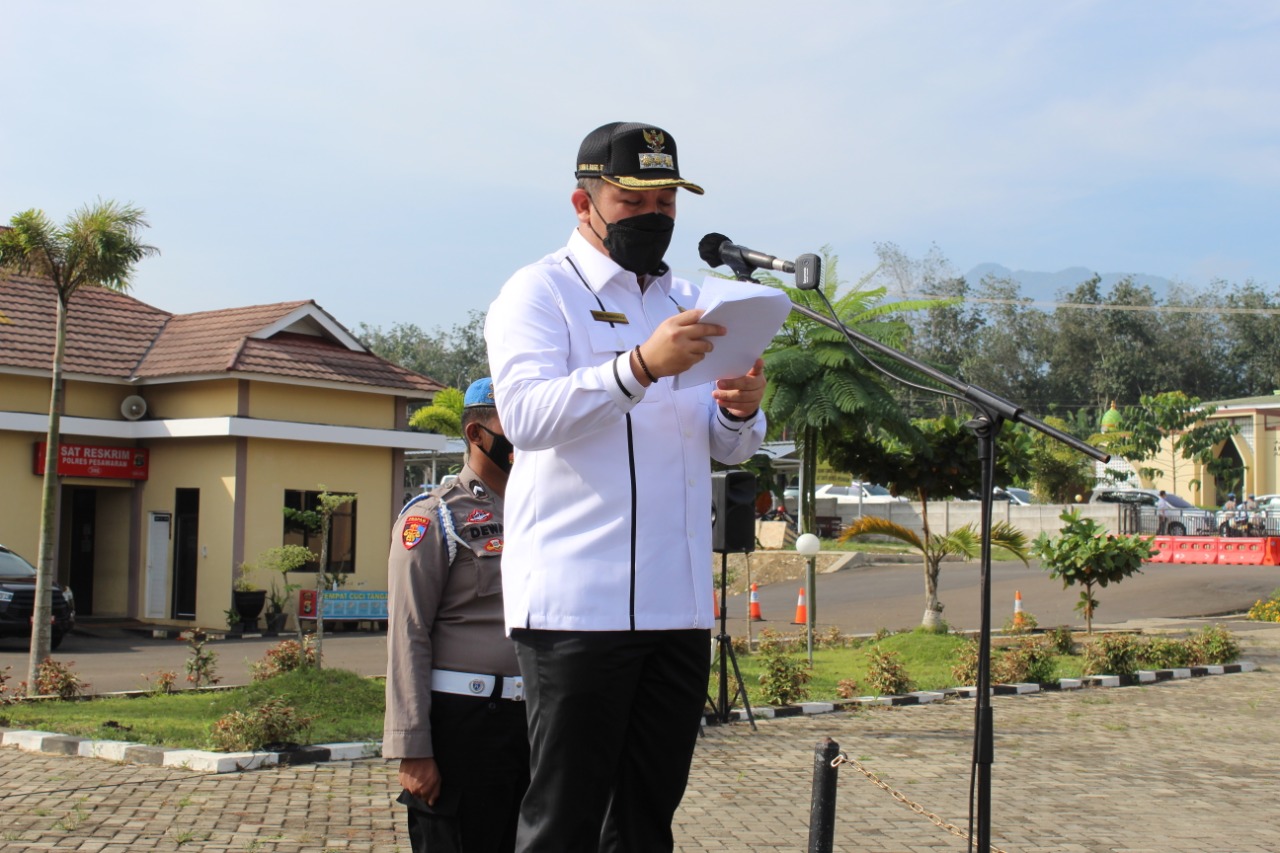 Pada kesempatan ini, Bupati Pesawaran selaku pemimpin apel membacakan sambutan Kepala Kepolisian Negara Republik Indonesia Jenderal Polisi Drs. Listyo Sigit Prabowo, M.Si.