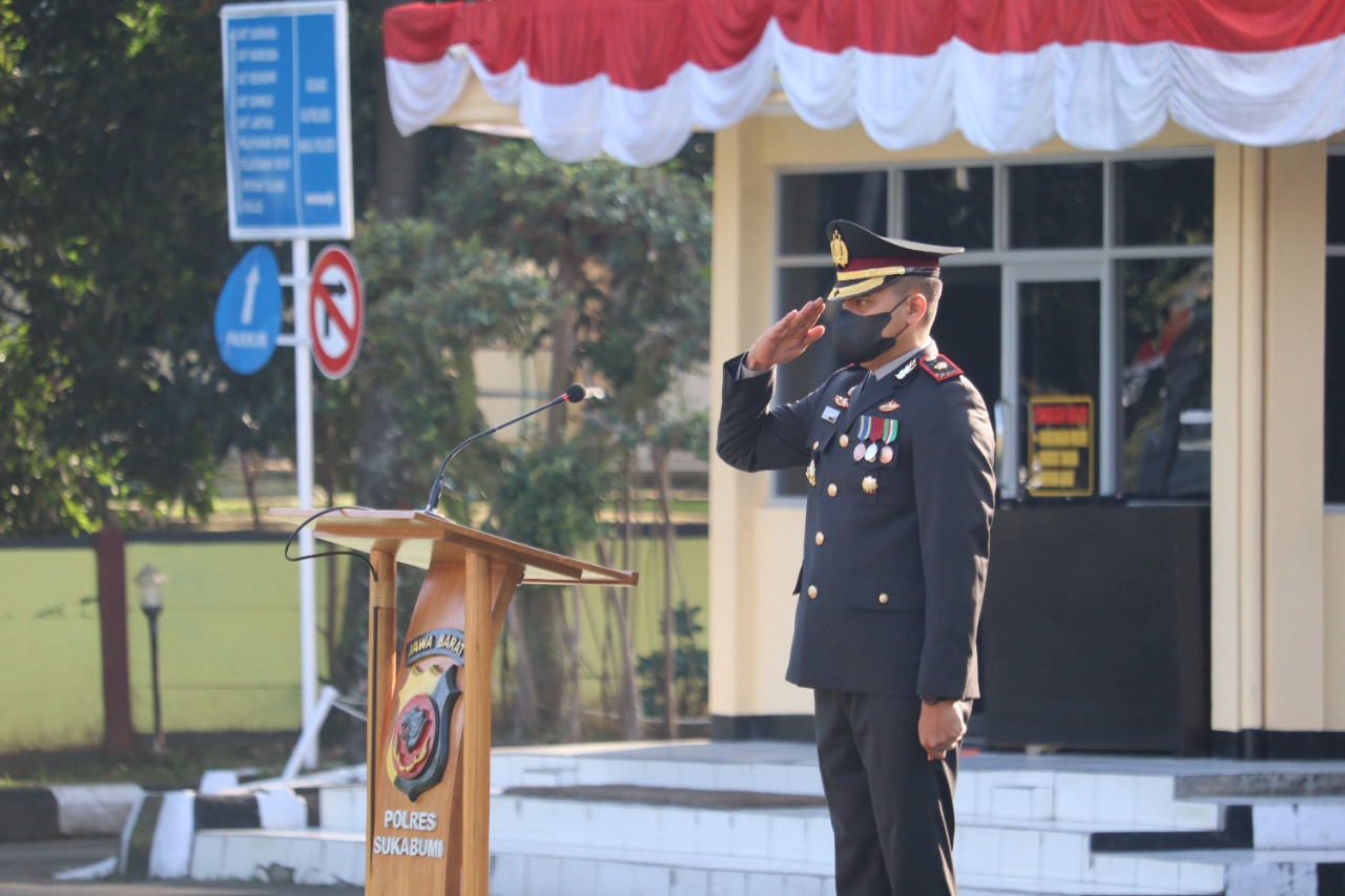 Upacara tersebut dipimpin oleh Wakapolres Sukabumi Kompol R. Bimo Moernanda dan para Pejabat Utama Polres sukabumi. mewakili Kapolres sukabumi AKBP Dedy Darmawansyah, dan dihadiri oleh seluruh personel Polres sukabumi.