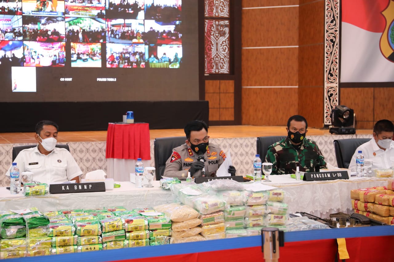 Kapolda Sumut, Irjen Pol RZ Panca Putra Simanjuntak, mengatakan selama dua bulan Tim Dit res Narkoba Polda Sumut bersama Polres Jajaran berhasil mengungkap 35 kasus dengan mengamankan barang bukti sabu seberat 412, 96 kg, pil ekstasi sebanyak 54.614 butir dan ganja 674 kg.
