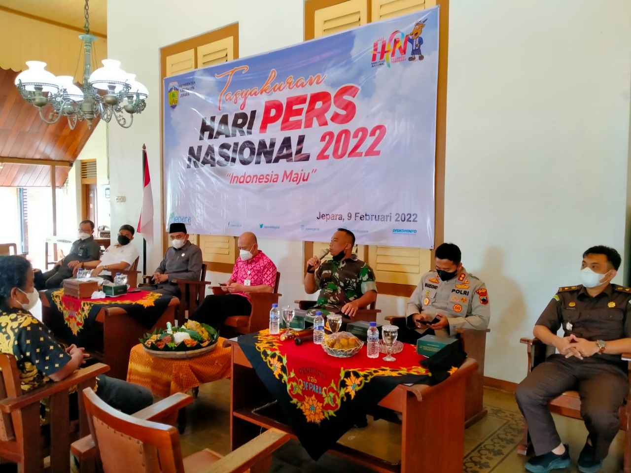 Jepara – Dalam rangka memperingati Hari Pers (HPN) Tahun 2022 Komandan Kodim 0719/Jepara Letkol Arh Tri Yudhi Herlambang, S.E., M.I.Pol bersama jajaran Forkopimda Kabupaten Jepara menghadiri kegiatan Tasyakuran Hari Pers Nasional (HPN) Tahun 2022 dengan mengusung tema “Indonesia Maju”.