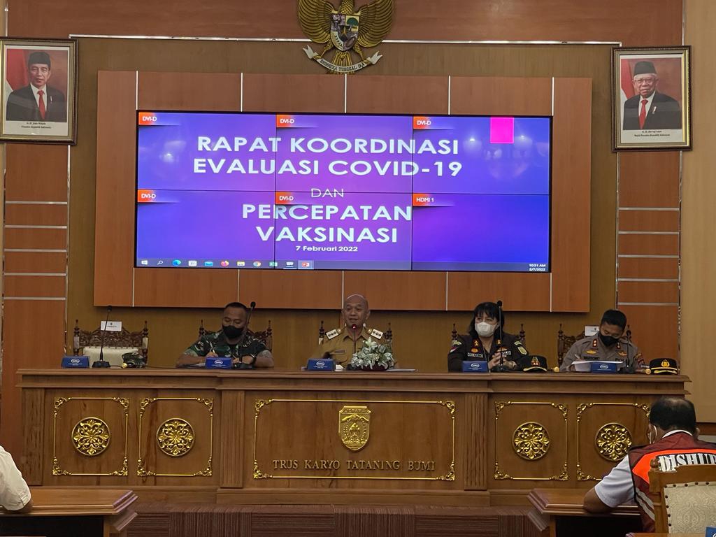 MediaSuaraMabes, Jepara – Komandan Kodim 0719/Jepara Letkol Arh Tri Yudhi Herlambang, S.E., M.I.Pol menghadiri Rapat Koordinasi Evaluasi Covid-19 dan Percepatan Vaksinasi di wilayah Kabupaten Jepara yang dilaksanakan di Gedung Shima, depan Kantor Setda Jepara. Senin (7/2/2022).