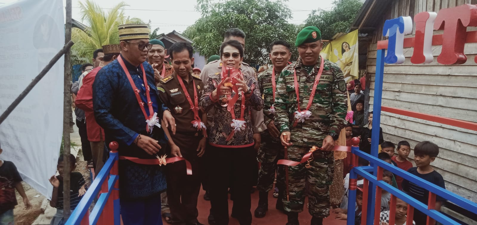 MediaSuaraMabes, Singkawang – Dandim 1202/Skw letkol KAV I Nyoman artawan S.Sos bersama Forkompimda kota Singkawang meresmikan jembatan di 3 kelurahan kecamatan singkawang Utara dan pembagian beras kepada kaum duafa bertempat di kelurahan Sungai Garam kec , Singkawang Utara, Jumat (16/12/2022).