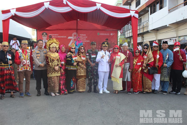 MediaSuaraMabes, Singkawang – Komandan Kodim 1202/Skw Letnan Kolonel Arm Ferdy Pongsamma Radja, S.H. beserta Forkompinda menghadiri pawai Karnaval dalam rangka memeriahkan Hari Ulang Tahun ke 78 Republik Indonesia di jalan R.A Kartini ,Kel sekip lama kec singkawang tengah,