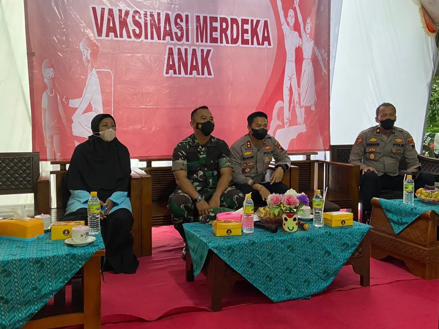 MediaSuaraMabes, Jepara – Komandan Kodim 0719/ Jepara Letkol Tri Yudhi Herlambang, SE., MI.Pol., bersama Kapolres Jepara AKBP Warsono, SH., SIK., MH, meninjau Vaksinasi anak dan mengikuti Zoom Meeting Dalam Rangka Pelaksanaan Vaksinasi Serentak di Seluruh Indonesia yang dipimpinan Presiden RI, Ir. Joko Widodo beserta Kapolri Jendral Pol. Listyo Sigit Prabowo.