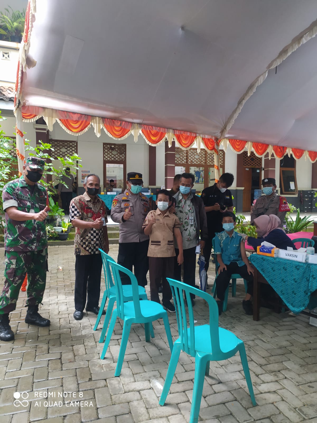 Kapolres Jepara, mengucapkan terimakasih dan mengapresiasi kepada tim Vaksinator dari dokkes Polres Jepara bersama Steakholder terkait atas pelaksanaan Vaksinasi dalam rangka Percepatan Vaksinasi Covid 19 bagi Anak Anak usia 6-11 tahun Dosis Satu maupun Dosis Dua.