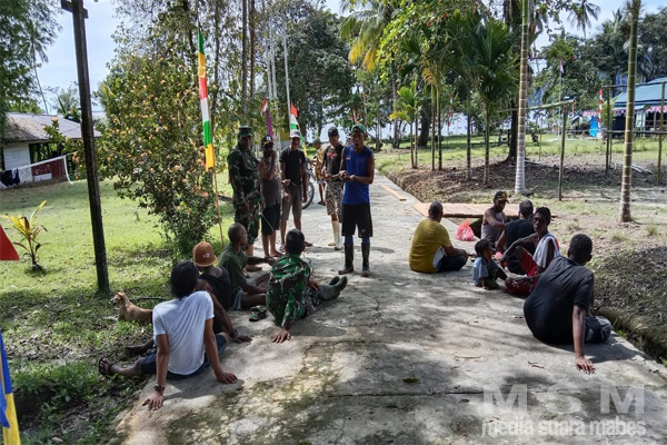 MediaSuaraMabes, Kwatisore ~ Danramil Koramil 1705-03/kwatisore Letda Inf Frist Karubaba beserta Anggota dan Babinkamtibmas polsek yaur melaksankaan penyuluhan kepada warga kampung Akudiomi Distrik Yaur Kab. Nabire.