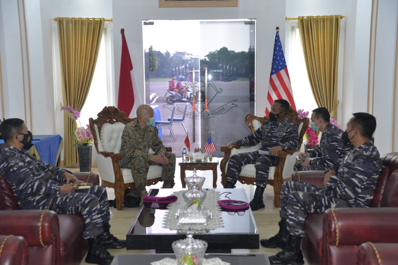 SuaraMabes, Jakarta – Komandan Korps Marinir (Dankormar) Mayor Jenderal TNI (Mar) Suhartono, berkenan menerima Atase Militer USMC (United States Marine Corps) Letkol Cedric Lee di Ruang VIP Gedung Cakra Brigif 1 Marinir Cilandak, Jakarta Selatan, Jum’at (16/04/2021).