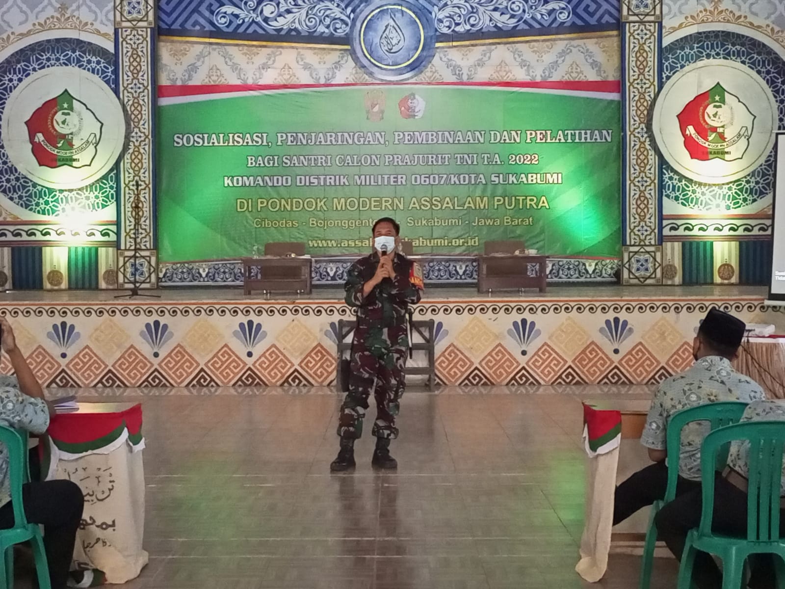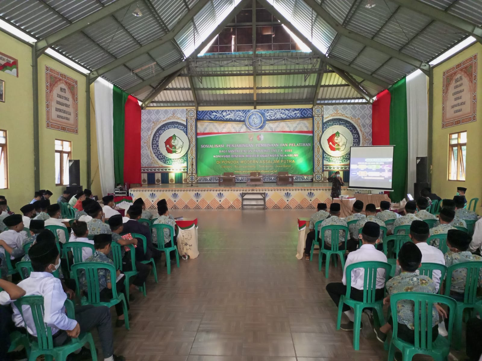 Bertempat di yayasan Ponpes ASSALAM PUTRA di kp,Situ Assalam ,RT 19/04, Desa Cibodas Kec. BOJONGGENTENG, Kab. Sukabumi telah dilaksanakan giat sponting dan kampanye kreatif dalam rangka penerimaan Caba dan Cata PK TNI AD sumber Santri dan lintas agama TA. 2022 oleh DANRAMIL 0607-12/PARUNGKUDA.