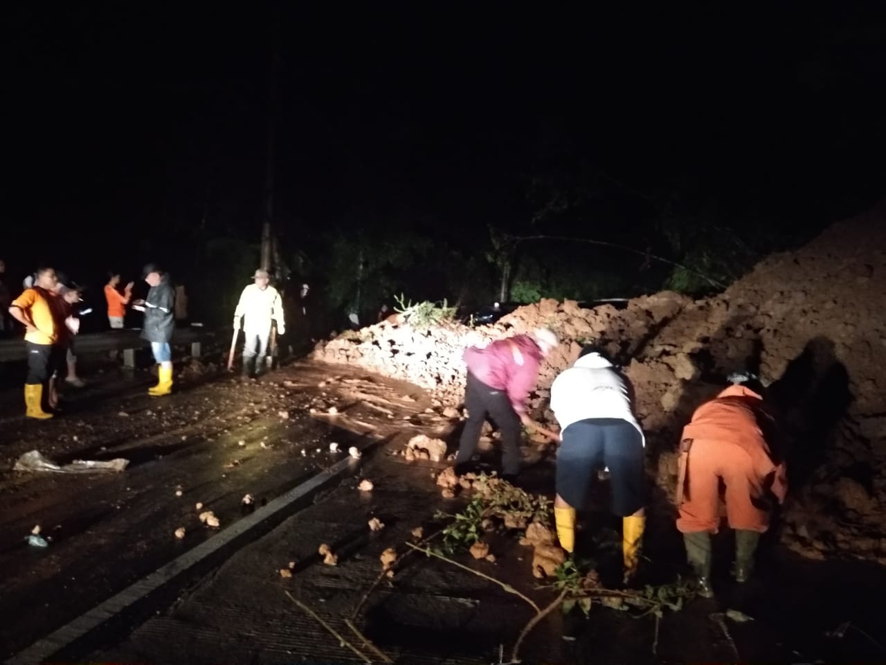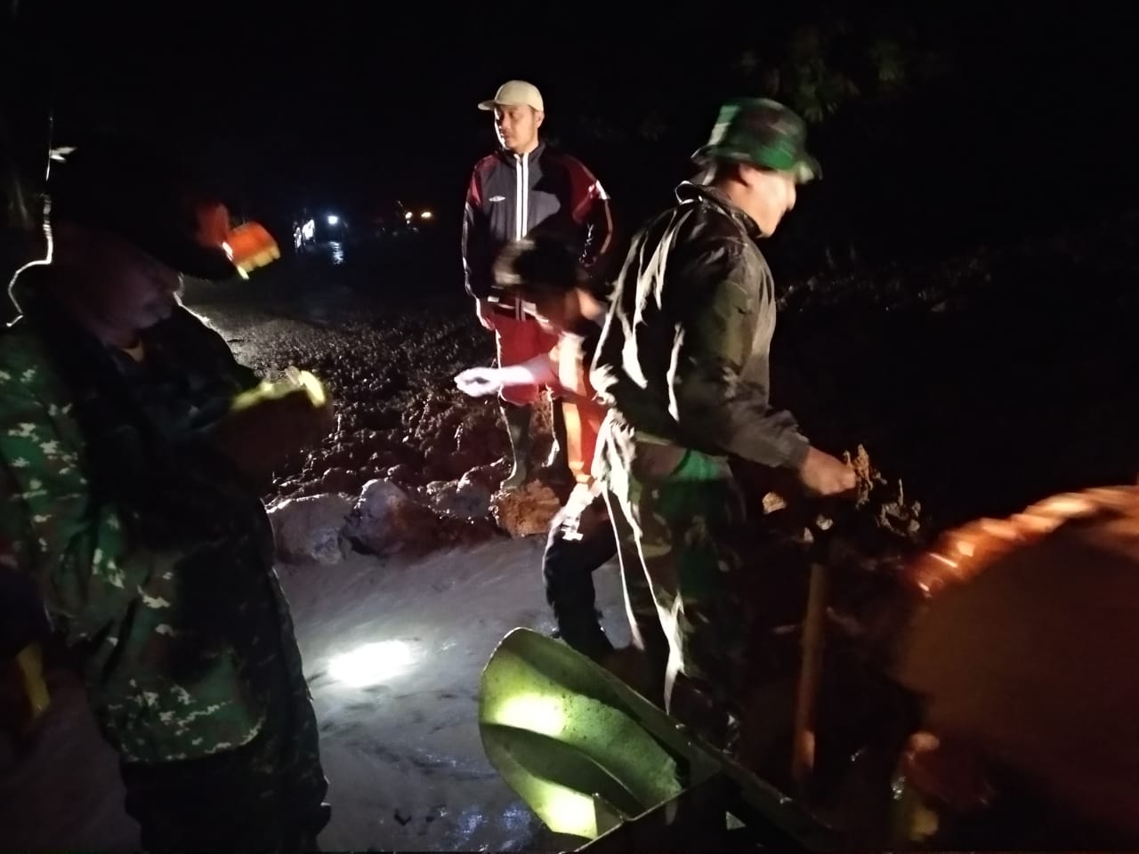 Sebagai upaya penanganan, karena terdampak pada akses, Danramil 422-04/Balik Bukit Kapten Inf Waniran Mengajak Anggotanya Bersama Dengan BPBD Kab. Lampung Barat Dan Camat Balik Bukit saling bahu- membahu membersihkan jalan yang tertutup tanah longsor tersebut.