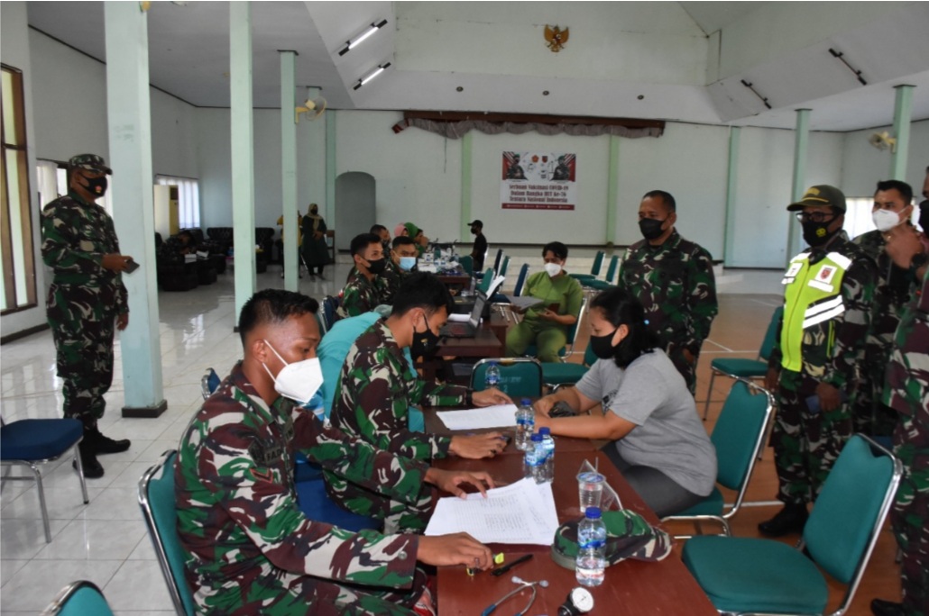 MediaSuaraMabes, Malteng – Media Humas Polri/ – Komandan Komando Resor Militer (Danrem) 151/Binaiya, Brigjen TNI Arnold A.P. Ritiauw meninjau pelaksanaan vaksinasi massal untuk masyarakat Tulehu yang digelar di aula Kampus Universitas Darusalam Tulehu, Kab. Maluku Tengah, Sabtu (25/9/2021).