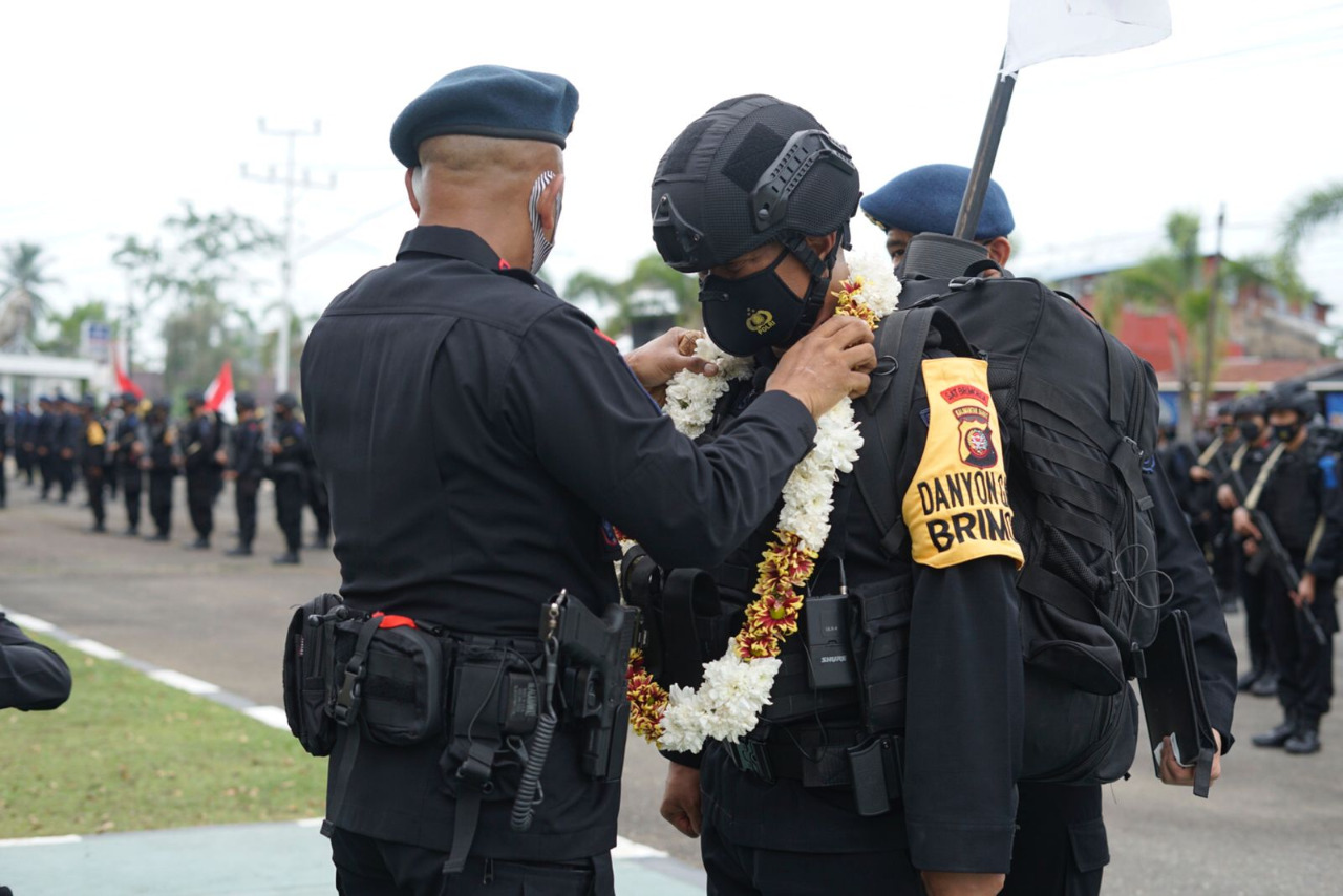 Sekali lagi saya ucapkan terimakasih karena selama kalian melaksanakan tugas disana kalian tidak ada membuat pelanggaran yang bisa mencoreng nama baik satuan kita ini” ucap Dansatbrimob Polda Kalimantan Barat Kombes Pol. Rantau Isnur Eka, S.IK., M.M., M.H.,