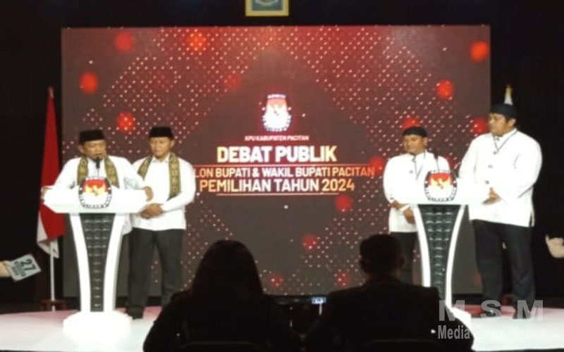 MediaSuaraMabes, Pacitan – Akhirnya debat calon Bupati dan Wakil Bupati Pacitan bisa terselenggara. Sebelumnya debat pertama gagal dilakukan tanggal 19 September 2024 disebabkan cuaca yang tidak mendukung, debat kali ini mengambil tema meningkatkan pelayanan dan kesejahteraan masyarakat serta memajukan daerah.