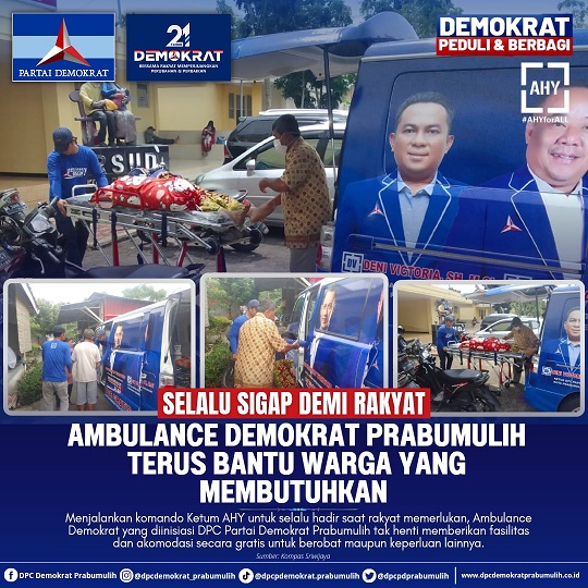 Mobil ambulance dengan branding Ketua Umum Partai Demokrat AHY, Ketua DPD Cik Ujang dan Ketua DPC Deni Victoria tersebut sengaja disiagakan, sebagai komitmen dan wujud kepedulian DPC Partai Demokrat Prabumulih terhadap warga yang membutuhkan.