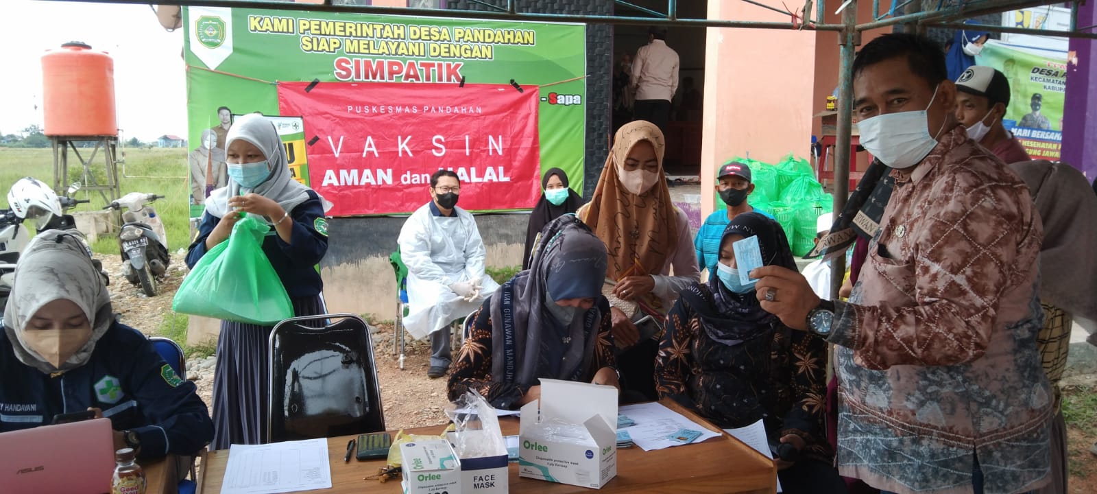 MediaSuaraMabes, Tapin – Kamis (26/08/2021) pukul 08.00 warga Desa Pandahan sudah berkumpul di Balai Desa Pandahan untuk mendapatkan vaksin dari Tim Puskesmas Pandaha. Kerja sama dengan Pemerintah Desa Pandahan, Kecamatan Tapin Tengah, Kabupaten Tapin.