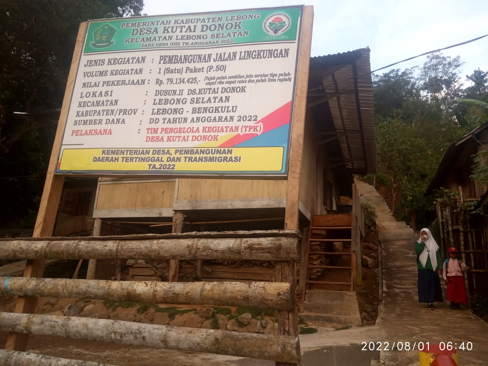 Bangunan jalan lingkungan didusun II kutai Donok tersebut menghabiskan anggaran Rp. 79.134.425.