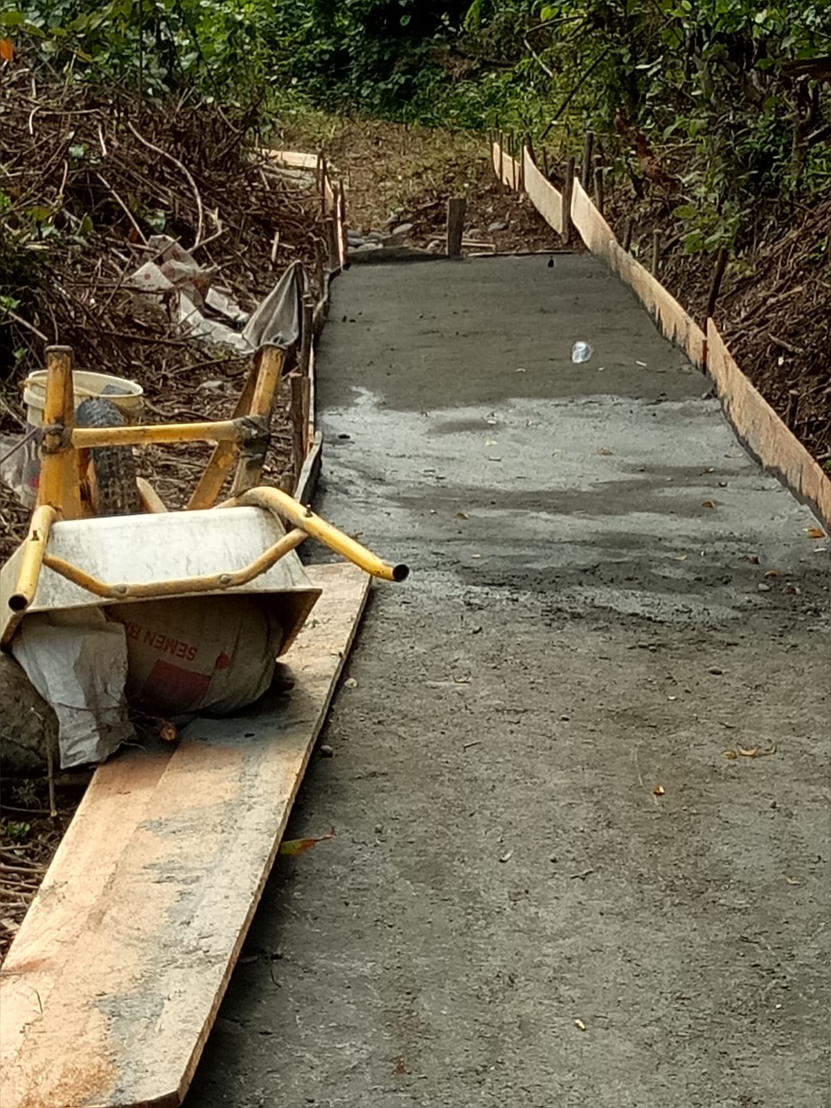 Indi menjelaskan kalau proyek pembangunan jalan setapak dari dusun dua menuju dusun empat ini menggunakan anggaran Dana Desa tahun 2020, pembangunan tahap pertama menggunakan anggaran pada termin ke 2 sepanjang 290 meter dan pembangunan selanjutnya sepanjang 440 meter menggunakan anggaran pada termin ke 3.