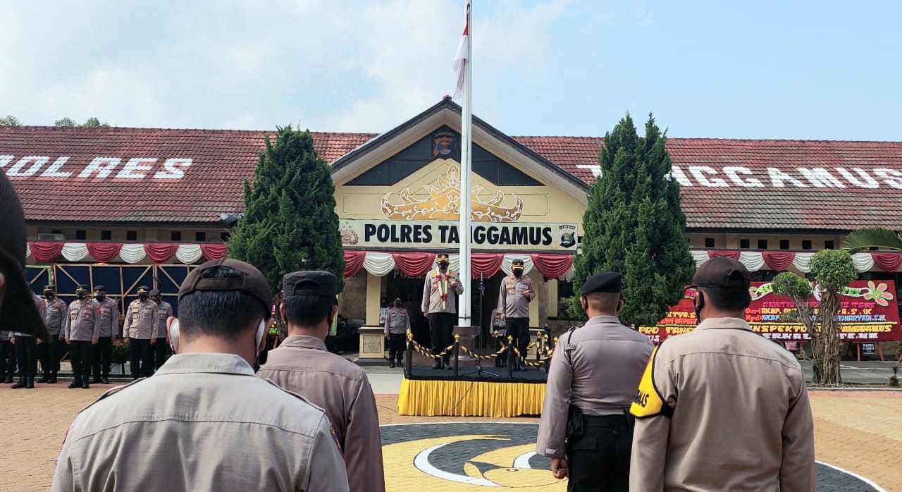 Upacara digelar sederhana di ikuti pejabat utama Polres, Kapolsek jajaran dan perwakilan anggota serta ASN Polres Tanggamus di lapangan apel Mapolres, Kamis (12/8/21).