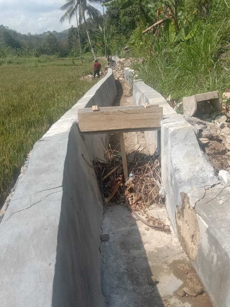 “Sekarang untuk perehapan irigasi yang jebol ini diganti dengan fondasi kedalamannya 50 cm dan tebal dinding 50 cm”.ucapnya